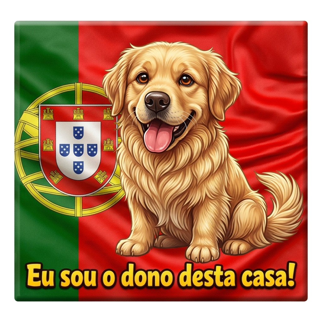 This hilarious Golden Retriever fridge magnet combines the charm of Portugal’s national flag with everyone’s favorite dog breed. The cute cartoon Golden Retriever proudly declares “Eu sou o dono desta casa!” (I am the owner of this house!) — because we all know who really runs the household!