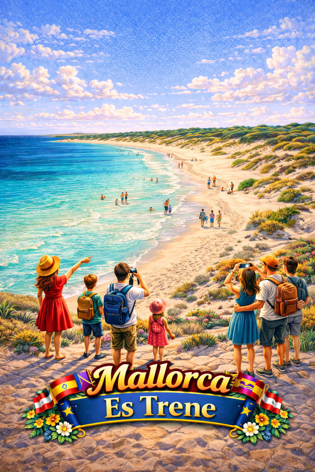 Souvenir cutting board featuring Mallorca’s most iconic view — the Gothic cathedral La Seu rising above the Mediterranean shoreline in Palma. Built over 400 years starting in 1229, it has one of the largest rose windows in the world. Mallorca combines stunning beaches (Es Trenc, Cala Millor), mountain villages in the Serra de Tramuntana, and a cosmopolitan capital. The most visited Balearic island with 2.5 million tourists annually.