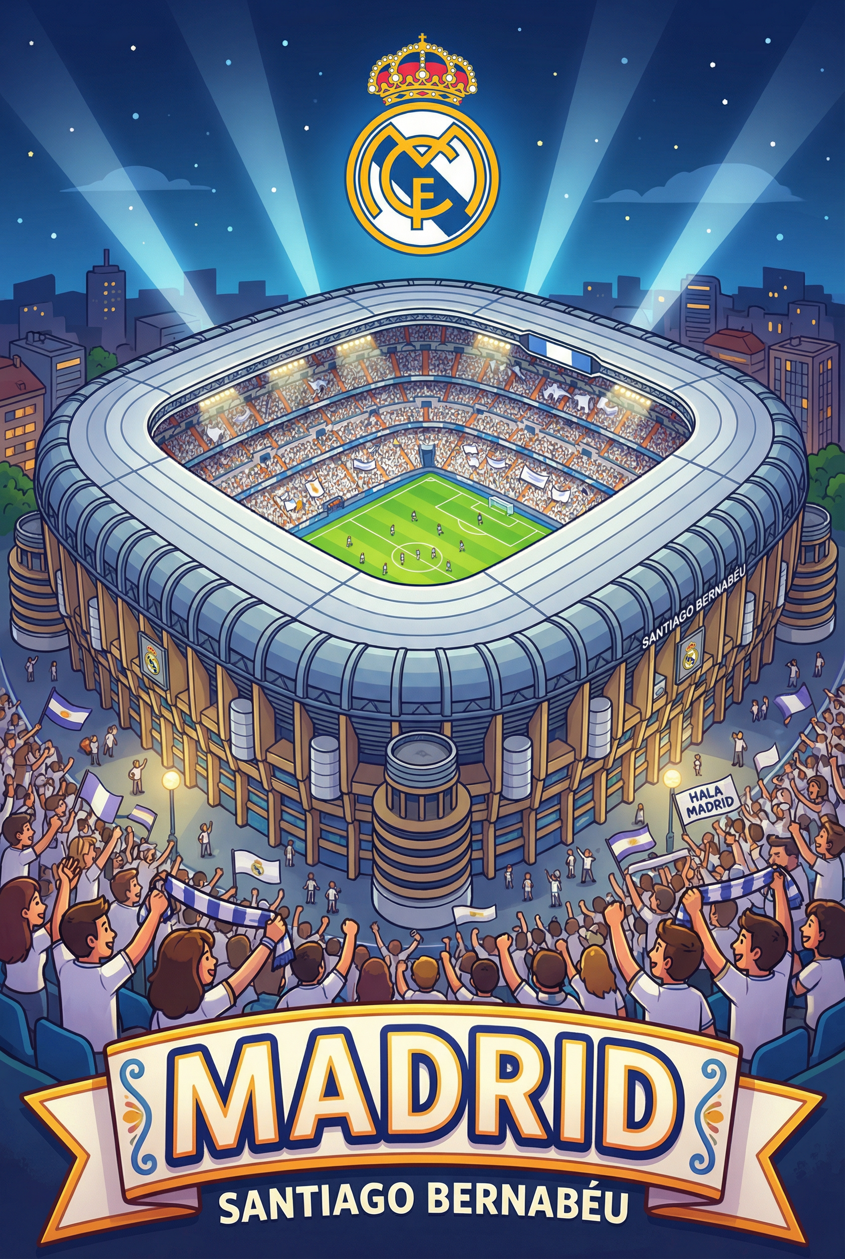 Santiago Bernabéu — Real Madrid’s legendary stadium. Newly renovated home of Los Blancos on plywood.