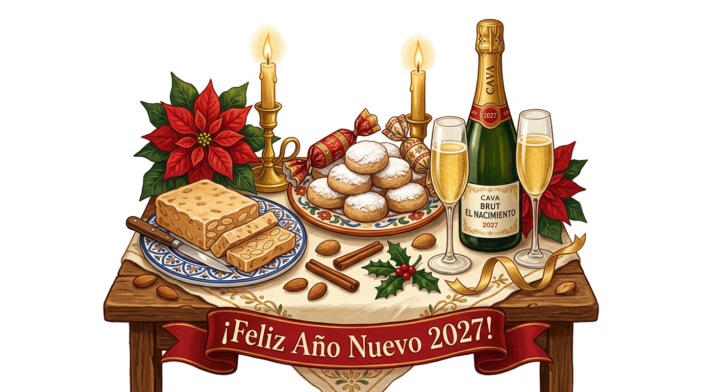 Spanish Turrón & Poinsettia New Year Fridge Magnet 2027