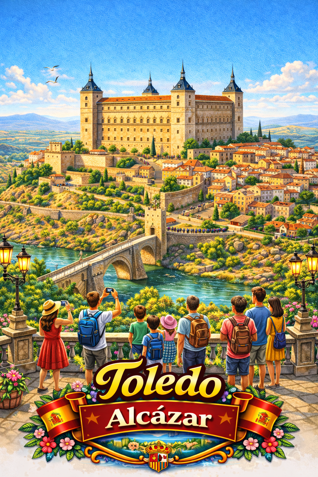 Souvenir cutting board featuring the Primate Cathedral of Toledo — one of Spain’s greatest Gothic cathedrals, built between 1226 and 1493. Its soaring nave, five aisles, and monumental golden altarpiece (the Retablo Mayor) make it one of the most impressive church interiors in Europe. The sacristy is an art gallery in itself, with paintings by El Greco, Velázquez, Goya, and Caravaggio. The cathedral’s single tower, crowned by a spiny Gothic crown, is Toledo’s most recognizable silhouette and has been the seat of Spain’s Catholic primate for over 700 years.
