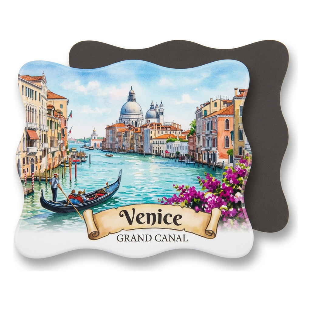 This iconic Venice moment — the gentle splash of the oar, the gondolier’s song, the ancient palaces — is perfectly captured on this handcrafted wooden magnet.